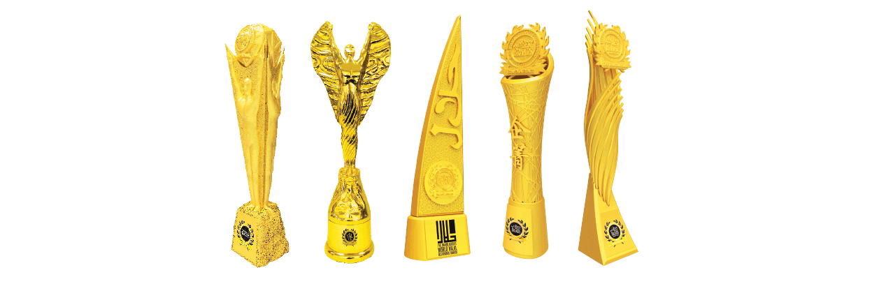 A new trophy is designed for every annual award to reflect its theme; however the main elements of the trophy that is the statuette and emblem remain the same. The trophy is a mark of distinction and recognition of brand success.